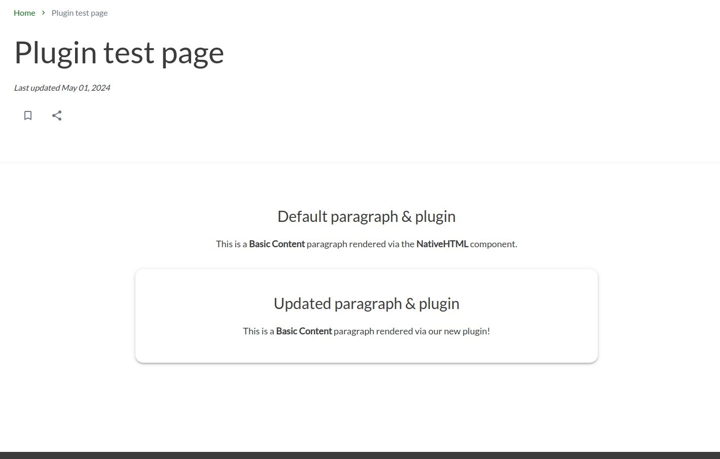 When I view the updated page in the frontend, nothing has changed. Our next step is to add a plugin.
